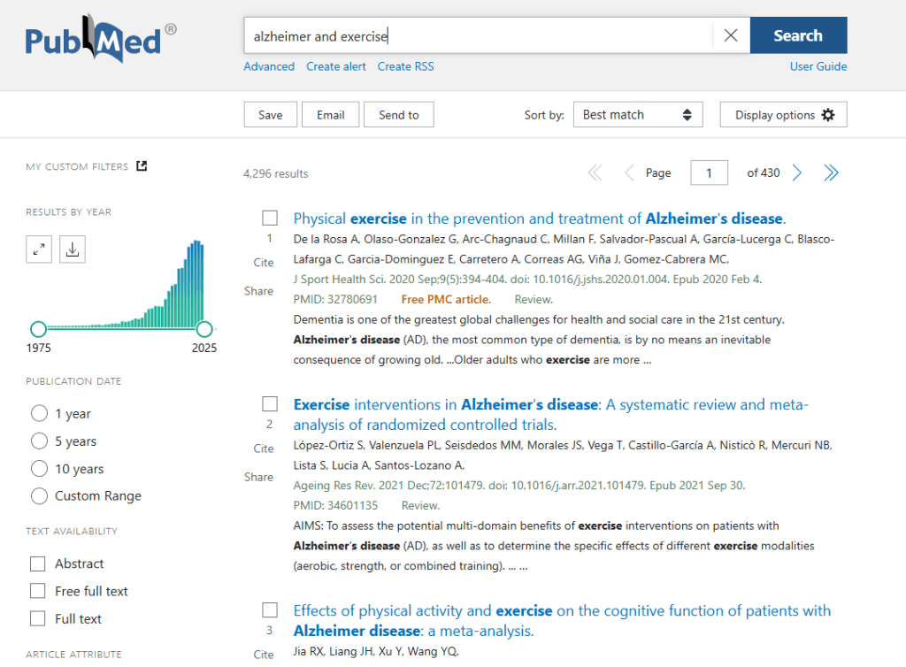 - Text availability: Choose “Free full text” if you lack institutional access.